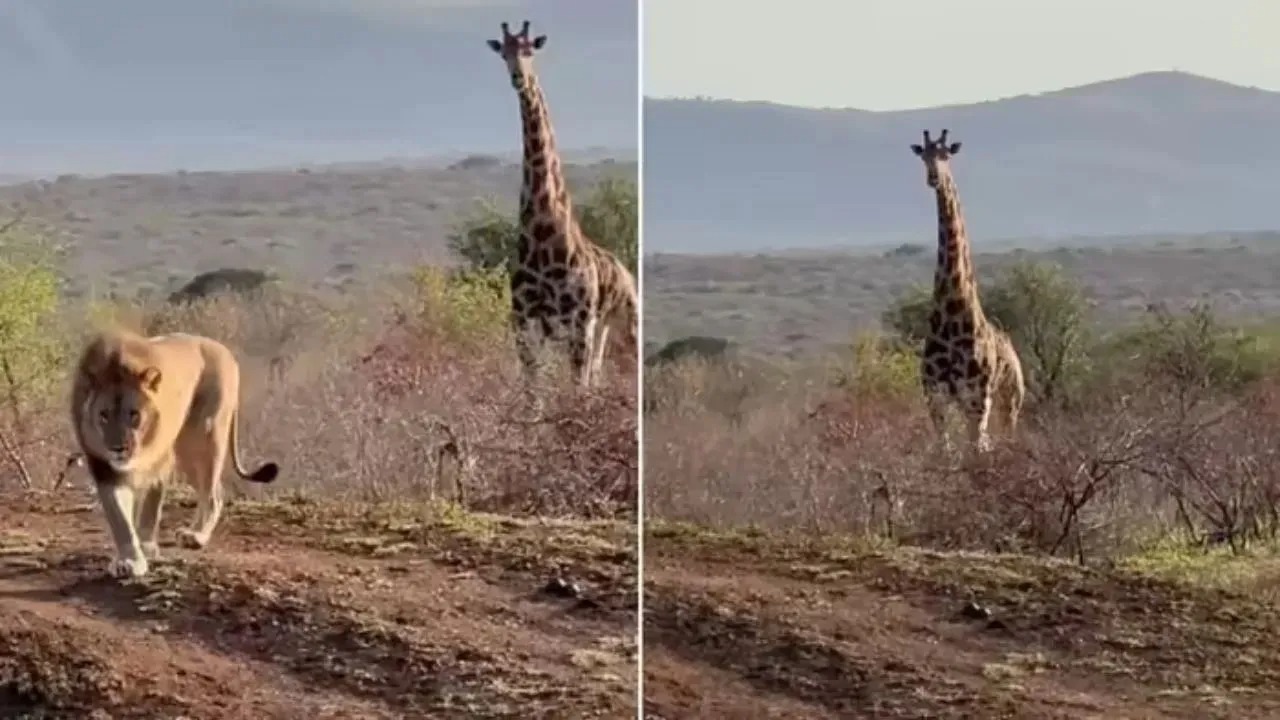 पल भर में बदल गया पूरा खेल! नदी किनारे पानी पी रहे जिराफ पर शेर ने किया हमला; लेकिन जंगल का राजा देखता रहा जो हुआ, Video Viral
