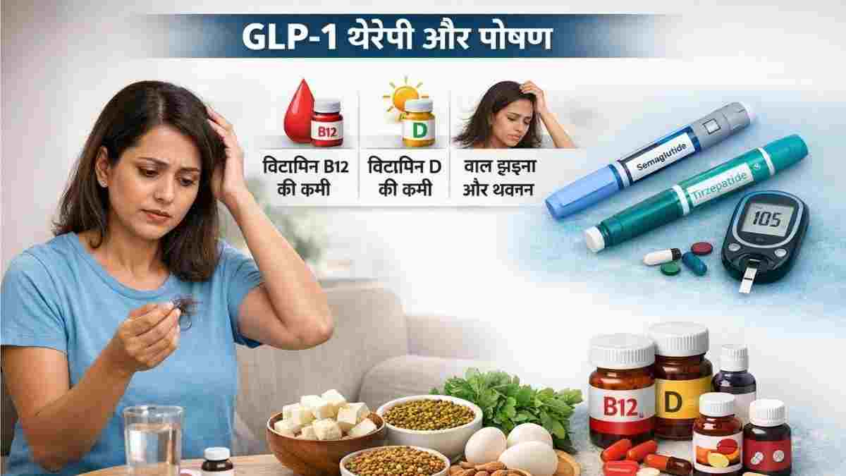 भारत में मोटापा (Obesity) और डायबिटीज के मरीजों के लिए GLP-1 (Glucagon-Like Peptide-1) थेरेपी किसी वरदान से कम नहीं मानी जा रही है। सेमाग्लूटाइड (Semaglutide) और टिर्जेपाटाइड (Tirzepatide) जैसी दवाओं ने वजन घटाने की जंग में नई उम्मीद जगाई है। लेकिन, क्या आप जानते हैं कि तेजी से चर्बी गलाने वाली यह थेरेपी आपके शरीर में जरूरी पोषक तत्वों की भारी कमी भी कर सकती है? हाल ही में दिल्ली के अपोलो अस्पताल के विशेषज्ञों ने एक ऐसा मामला साझा किया है, जिसने इस ‘चमत्कारी’ इलाज के दूसरे पहलू को उजागर कर दिया है।केस स्टडी: जब स्कूल टीचर की कम हुई भूख, पर बढ़ गई मुश्किलेंइंद्रप्रस्थ अपोलो अस्पताल के एंडोक्रिनोलॉजी सलाहकार डॉ. सप्तर्षि भट्टाचार्य ने एक 42 वर्षीय स्कूल टीचर का उदाहरण दिया। महिला ने टाइप-2 डायबिटीज और मोटापे को कंट्रोल करने के लिए GLP-1 थेरेपी शुरू की थी। कुछ ही महीनों में उनका शुगर लेवल सामान्य हो गया और वजन भी घटा, लेकिन इसके साथ ही उन्हें भयंकर थकान और हेयर फॉल (बाल झड़ना) की समस्या होने लगी। जांच में सामने आया कि उनके शरीर में विटामिन B12, विटामिन D और आयरन की खतरनाक स्तर तक कमी हो गई थी।GLP-1 थेरेपी कैसे काम करती है और क्या हैं इसके जोखिम?यह थेरेपी शरीर में कुदरती हार्मोन की नकल करती है, जिससे इंसुलिन का उत्पादन बढ़ता है और पेट खाली होने की प्रक्रिया धीमी हो जाती है। नतीजा यह होता है कि व्यक्ति को भूख कम लगती है और वह कम खाना खाता है। लेकिन भारतीय खानपान, जिसमें पहले से ही कार्बोहाइड्रेट (चावल, आलू, गेहूं) की अधिकता और प्रोटीन की कमी होती है, वहां यह थेरेपी ‘साइलेंट किलर’ साबित हो सकती है। अगर आप कम खा रहे हैं और वह खाना भी पोषक तत्वों से भरपूर नहीं है, तो शरीर कुपोषण का शिकार होने लगता है।इन 5 पोषक तत्वों की हो सकती है भारी कमीडॉक्टरों के अनुसार, GLP-1 थेरेपी लेने वाले मरीजों को निम्नलिखित कमियों के प्रति सतर्क रहना चाहिए:विटामिन B12: शाकाहारियों में इसकी कमी पहले से होती है, जो इस थेरेपी से और बढ़ सकती है।विटामिन D: मोटापा कम होने के दौरान फैट-सॉल्युबल विटामिन्स का अवशोषण प्रभावित होता है।आयरन और फोलेट: इनकी कमी से एनीमिया और कमजोरी महसूस होती है।कैल्शियम: हड्डियों की मजबूती के लिए जरूरी यह मिनरल भी कम हो सकता है।प्रोटीन: भूख कम लगने पर लोग हल्का खाना खाते हैं, जिससे मसल्स लॉस (मांसपेशियों का नुकसान) होने लगता है।सुरक्षित तरीके से कैसे घटाएं वजन? एक्सपर्ट की सलाहअगर आप भी यह थेरेपी ले रहे हैं या लेने की योजना बना रहे हैं, तो केवल वजन कम करने पर नहीं, बल्कि ‘न्यूट्रिएंट डेंसिटी’ यानी पोषक तत्वों से भरपूर भोजन पर ध्यान दें। डॉ. भट्टाचार्य सुझाव देते हैं कि डाइट में दही, पनीर, दालें, नट्स और हरी पत्तेदार सब्जियों को प्राथमिकता दें। छोटे-छोटे ले