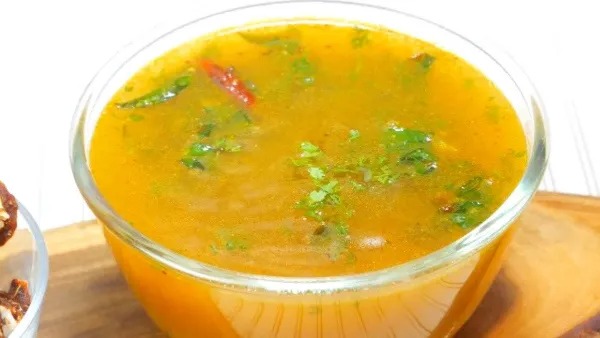 रसम एक ऐसी चीज़ है जो सबके मुँह में पानी ला देगी। खासकर खाने के आखिर में, अगर आप रसम के दो निवाले खा लें, तो खाना पूरा हो जाएगा। इसी तरह, इस रसम की भी कई किस्में हैं। टमाटर से बने रसम से लेकर, कई तरह के रसम आपको बेहतरीन स्वाद देंगे। अगर आप इस स्वाद में रसम बनाएँ, तो सभी को ज़रूर पसंद आएगा।तो चलिए आज हम इमली रसम (Rasam Recipe) बनाना और उसका आनंद लेना सीखते हैं जो आपके खाने का स्वाद बढ़ा देगा। खाने के साथ खाने में यह बेहद स्वादिष्ट लगेगा। खाने के बाद गिलास में पीने में भी यह लाजवाब लगेगा।इस रसम को बनाने में इस्तेमाल होने वाली कई सामग्रियाँ आपकी सेहत के लिए भी अच्छी हैं। इसमें जीरा और काली मिर्च जैसी सामग्री का इस्तेमाल आपकी खांसी, सर्दी-ज़ुकाम और फ्लू जैसी समस्याओं के लिए भी फायदेमंद रहेगा। यह रसम बनाना सभी को पसंद आएगा। आइए आज इमली के रस से आसानी से बनने वाले रसम के बारे में जानें।आइए आज जानते हैं कि इमली का जूस बनाने के लिए क्या सामग्री चाहिए, इसे कैसे बनाना है और इसमें कितना समय लगेगा।इमली का जूस बनाने के लिए सामग्रीइमली का फल – नींबू के आकार काजीराकाली मिर्चहरा धनियाकरी पत्तेतेलसरसोंइंगुलहसुनसूखी मिर्चहल्दी पाउडरनमकइमली का जूस बनाने का सबसे आसान तरीका क्या है?सबसे पहले इमली को भिगो दें। एक बड़े नींबू के आकार की इमली लें और उसे गर्म पानी में भिगो दें।फिर एक मिक्सर जार लें और उसमें जीरा और काली मिर्च डालकर पीसकर पाउडर बना लें।इस पिसे हुए मसाले को निकाल कर एक कटोरे में डाल लें।अब भीगी हुई इमली को निचोड़कर उसका रस तैयार कर लीजिए। रस गाढ़ा होने दीजिए और थोड़ा पानी डालकर निचोड़ लीजिए।रसम बनाने के लिए, एक पैन को स्टोव पर रखें, उसमें तेल डालें और गर्म होने दें।गरम तेल में राई, हींग, लहसुन और सूखी मिर्च डालें और भून लें।1 मिनट तक भूनने के बाद इसमें करी पाउडर डालकर मिला लें।अब इसमें उबली हुई इमली का पानी डालें और साथ ही पिसा हुआ जीरा और मिर्च पाउडर भी डालें।अब इसमें आधा चम्मच हल्दी पाउडर मिलाएं।स्वादानुसार नमक डालें और तब तक मिलाएँ जब तक सभी सामग्रियाँ मिल न जाएँ।अब इसमें ज़रूरत के अनुसार पानी डालें। थोड़ा ज़्यादा पानी इस्तेमाल करें।आंच तेज रखें और इसे उबलने दें।अगर हाँ, तो लीजिए, आपके पास स्वादिष्ट इमली का अचार तैयार है। आखिर में हरा धनिया डालकर परोसें।