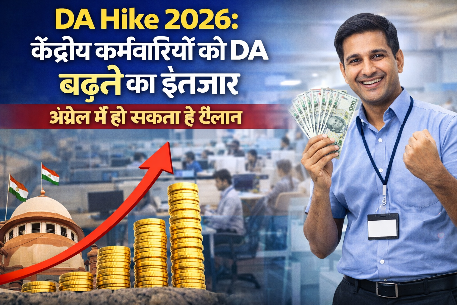 देश के 1 करोड़ से ज्यादा केंद्रीय कर्मचारियों और पेंशनर्स के लिए साल 2026 की पहली छमाही सौगातों भरी हो सकती है। केंद्र सरकार के कर्मचारियों को जनवरी 2026 से देय महंगाई भत्ते (DA) की बढ़ोतरी का बेसब्री से इंतजार है। हालांकि, आमतौर पर इसका ऐलान होली के आसपास हो जाता है, लेकिन इस बार तकनीकी कारणों से इसमें कुछ देरी हुई है। ताजा मीडिया रिपोर्ट्स और आंकड़ों के मुताबिक, केंद्र सरकार अप्रैल 2026 के पहले या दूसरे हफ्ते में डीए (DA Hike) में बढ़ोतरी की आधिकारिक घोषणा कर सकती है। राहत की बात यह है कि जब भी यह फैसला आएगा, इसे 1 जनवरी 2026 से ही प्रभावी माना जाएगा और कर्मचारियों को पिछले महीनों का एरियर भी मिलेगा।कितना बढ़ सकता है डीए? 60% के पार पहुंचने की उम्मीदउपभोक्ता मूल्य सूचकांक (CPI-IW) के ताजा आंकड़ों के आधार पर यह अनुमान लगाया जा रहा है कि इस बार महंगाई भत्ते में 2% की बढ़ोतरी की जा सकती है। वर्तमान में केंद्रीय कर्मचारियों को 58% की दर से डीए मिल रहा है, जो इस इजाफे के बाद 60% तक पहुंच सकता है। सरकार आमतौर पर दशमलव के आंकड़ों को राउंड ऑफ करके अंतिम दर तय करती है, जिससे कर्मचारियों की टेक-होम सैलरी में अच्छा-खासा उछाल देखने को मिल सकता है।देरी की असली वजह: 8वें वेतन आयोग का गठनइस बार डीए के ऐलान में देरी के पीछे एक बड़ा रणनीतिक कारण माना जा रहा है। दरअसल, 7वें वेतन आयोग का कार्यकाल 31 दिसंबर 2025 को समाप्त हो चुका है और केंद्र सरकार ने 8वें वेतन आयोग (8th Pay Commission) के गठन की प्रक्रिया शुरू कर दी है। नए आयोग की सिफारिशें आने और पूरी तरह लागू होने में अभी वक्त लगेगा। संक्रमण के इस दौर में सरकार यह सुनिश्चित कर रही है कि जब तक 8वां वेतन आयोग प्रभावी नहीं होता, तब तक सातवें वेतन आयोग के ढांचे के तहत ही साल में दो बार होने वाली डीए बढ़ोतरी को सुचारू रूप से जारी रखा जाए।किसे और कैसे मिलेगा इस बढ़ोतरी का फायदा?सरकार के इस फैसले का सीधा लाभ 50 लाख से अधिक केंद्रीय कर्मचारियों और लगभग 65 लाख पेंशनभोगियों को मिलेगा।केंद्रीय कर्मचारी: इन्हें महंगाई भत्ते (Dearness Allowance – DA) के रूप में बढ़ी हुई सैलरी मिलेगी।पेंशनर्स: इन्हें महंगाई राहत (Dearness Relief – DR) के रूप में बढ़ी हुई पेंशन प्राप्त होगी।यह बढ़ोतरी न केवल बेसिक सैलरी पर आधारित होगी, बल्कि इससे अन्य भत्तों (HRA आदि) में भी आनुपातिक सुधार की संभावना बन सकती है।साल में दो बार होता है डीए का रिवीजननियमों के मुताबिक, केंद्र सरकार साल में दो बार महंगाई भत्ते की समीक्षा करती है:पहली छमाही: जनवरी से लागू (जिसका ऐलान मार्च-अप्रैल में होता है)।दूसरी छमाही: जुलाई से लागू (जिसका ऐलान अक्टूबर-नवंबर में होता है)।इसका मुख्य उद्देश्य बढ़ती महंगाई के बीच कर्मचारियों की क्रय शक्ति (Purchasing Power) को बनाए रखना है। अप्रैल में होने वाला यह 