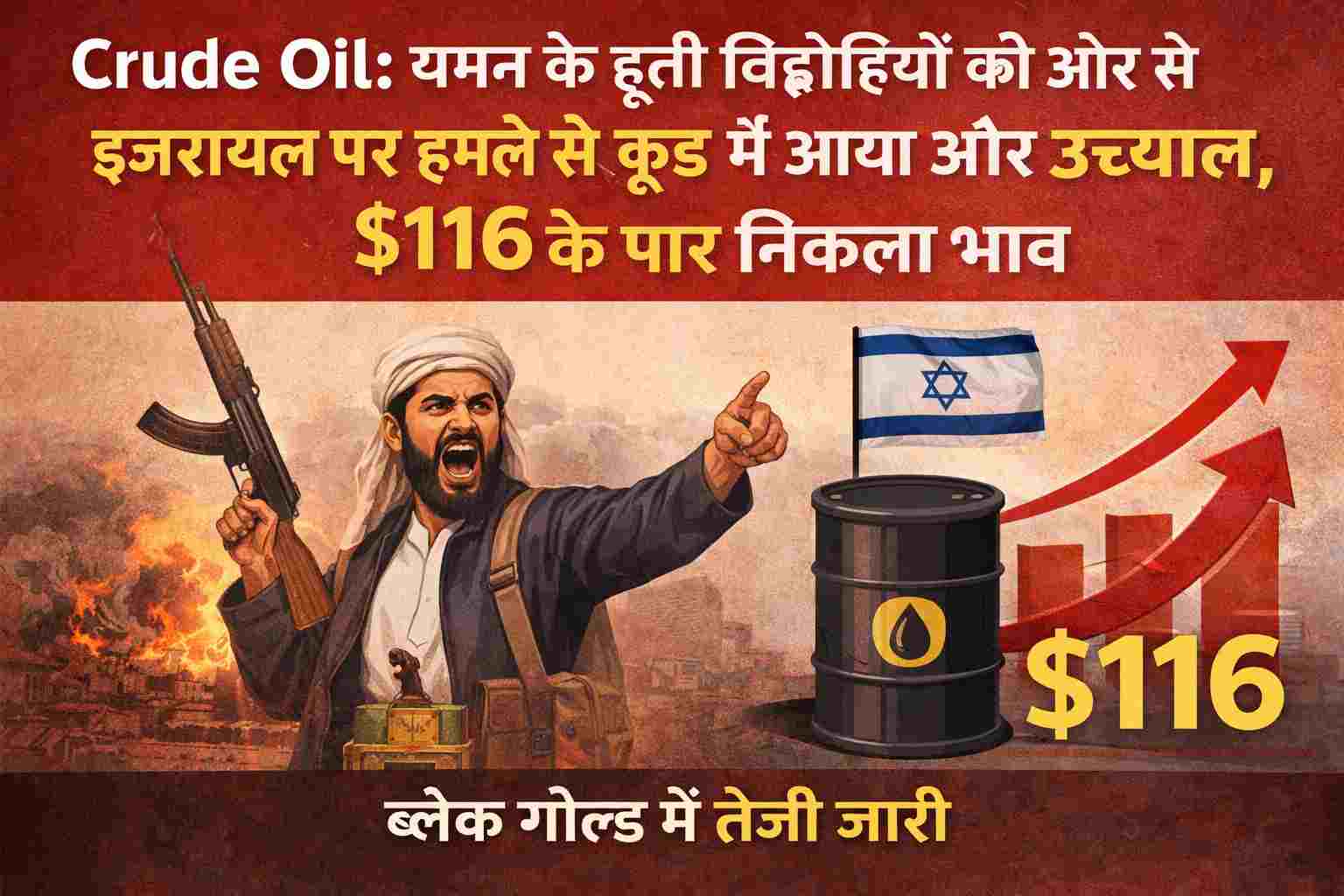 ग्लोबल मार्केट से कच्चे तेल की कीमतों को लेकर बेहद डराने वाली खबर सामने आ रही है। सोमवार को इंटरनेशनल मार्केट में कच्चे तेल (Crude Oil) की कीमतों में जोरदार उछाल दर्ज किया गया, जिसने दुनिया भर की अर्थव्यवस्थाओं की चिंता बढ़ा दी है। स्ट्रेट ऑफ होर्मुज के बाद अब लाल सागर (Red Sea) में जंग का एक नया फ्रंट खुलने से कच्चे तेल की सप्लाई चेन बुरी तरह प्रभावित होने की आशंका है। यमन के हूती विद्रोहियों द्वारा इजरायल पर किए गए ताजा मिसाइल हमलों ने जलते हुए मिडिल ईस्ट के संघर्ष में घी डालने का काम किया है, जिससे ब्रेंट क्रूड का भाव $116 प्रति बैरल के स्तर को पार कर गया है।हूती विद्रोहियों की एंट्री से बाजार में मचा हड़कंपताजा तनाव तब शुरू हुआ जब ईरान समर्थित हूती आंदोलन ने वीकेंड पर इजरायल को निशाना बनाकर कई मिसाइलें दागीं। हूतियों ने साफ चेतावनी दी है कि जब तक ईरान और उसके सहयोगियों पर हमले बंद नहीं होते, वे अपनी कार्रवाई जारी रखेंगे। इस घोषणा के बाद सोमवार को शुरुआती एशियाई कारोबारी घंटों में बेंचमार्क ब्रेंट क्रूड लगभग 3% की छलांग लगाकर $115.9 पर पहुंच गया, जो कुछ ही देर में $116.75 तक जा चढ़ा। वहीं, अमेरिकी बेंचमार्क वेस्ट टेक्सास इंटरमीडिएट (WTI) भी 3% से ज्यादा की बढ़त के साथ $103 प्रति बैरल के ऊपर ट्रेड कर रहा है।सप्लाई रूट पर मंडराया ‘हार्ट अटैक’ जैसा खतरामार्केट एक्सपर्ट्स के मुताबिक, लाल सागर का यह इलाका दुनिया की एनर्जी सप्लाई के लिए किसी ‘लाइफलाइन’ से कम नहीं है। हूतियों का जहाजों के रूट को बाधित करने का पुराना ट्रैक रिकॉर्ड रहा है, जिससे निवेशक डरे हुए हैं। विश्लेषकों का मानना है कि यदि सऊदी अरब के रेड सी एक्सपोर्ट हब ‘यानबू’ पर कोई हमला होता है, तो यह ग्लोबल तेल सप्लाई के लिए ‘हार्ट अटैक’ जैसा होगा। सऊदी का यह हब फिलहाल होर्मुज स्ट्रेट के विकल्प के तौर पर काम कर रहा था, लेकिन अब यह खुद हूतियों की मिसाइल रेंज में है।डोनाल्ड ट्रंप के बयान और अमेरिकी सेना की हलचल ने बढ़ाई टेंशनजियोपॉलिटिकल तनाव के बीच अमेरिका की सक्रियता ने भी बाजार को अस्थिर कर दिया है। पेंटागन द्वारा इलाके में हजारों अतिरिक्त सैनिकों की तैनाती और ईरान में लंबे ग्राउंड ऑपरेशन की खबरों ने आग में तेल डालने का काम किया है। इस बीच, अमेरिकी राष्ट्रपति डोनाल्ड ट्रंप के एक हालिया बयान ने खलबली मचा दी है, जिसमें उन्होंने कहा कि अमेरिका ईरान के मुख्य एक्सपोर्ट हब ‘खार्ग आइलैंड’ पर कब्जा कर सकता है। अगर ऐसा होता है, तो तेहरान की तरफ से होने वाला जवाबी हमला पूरी दुनिया के लिए तेल संकट पैदा कर सकता है।क्या वाकई होगा सप्लाई का संकट?हालांकि तेल की कीमतें आसमान छू रही हैं, लेकिन कुछ विशेषज्ञों का मानना है कि यह उछाल अभी वास्तविक सप्लाई की कमी के कारण न